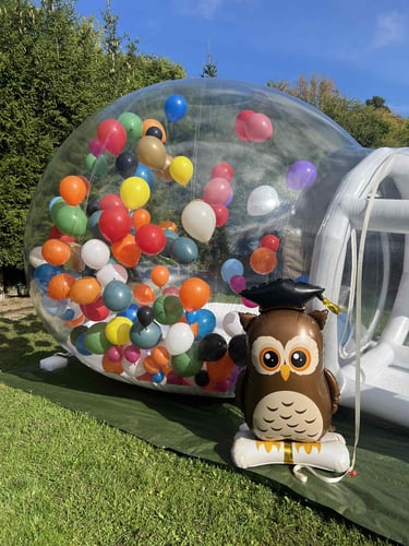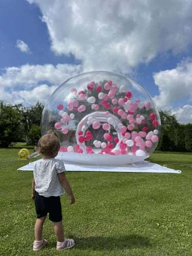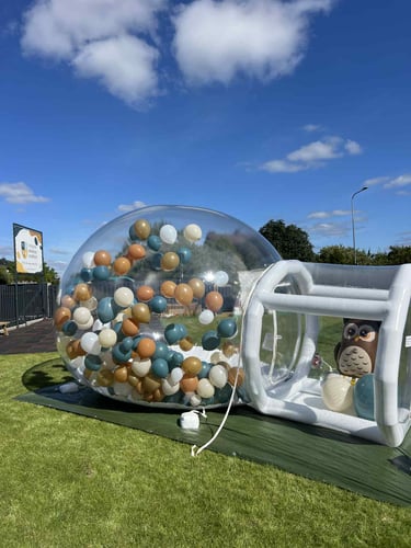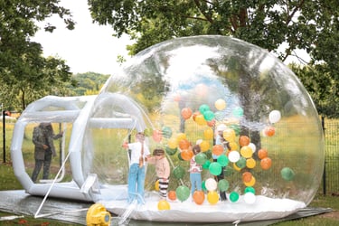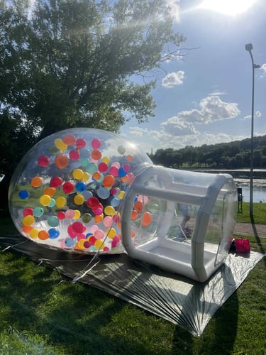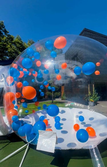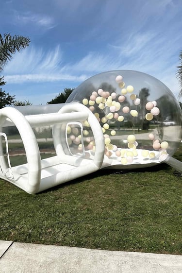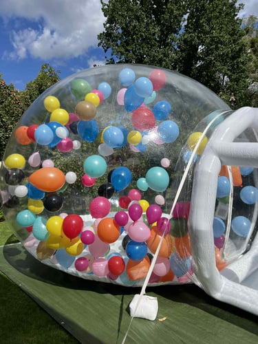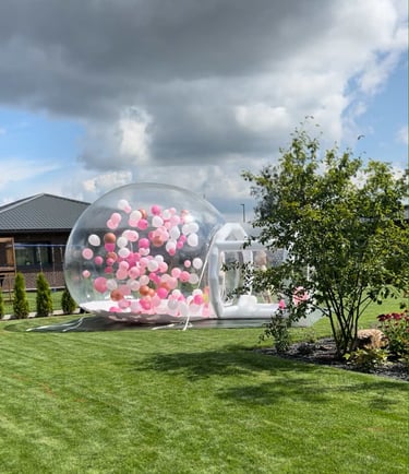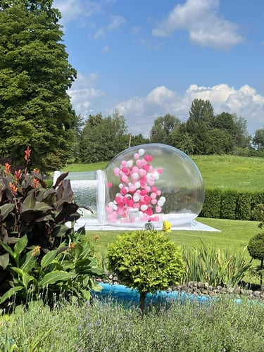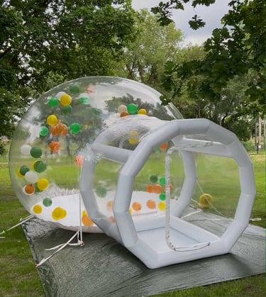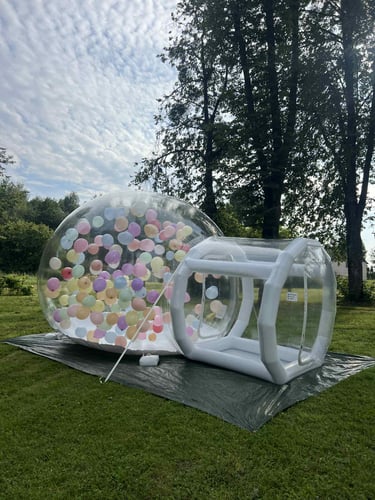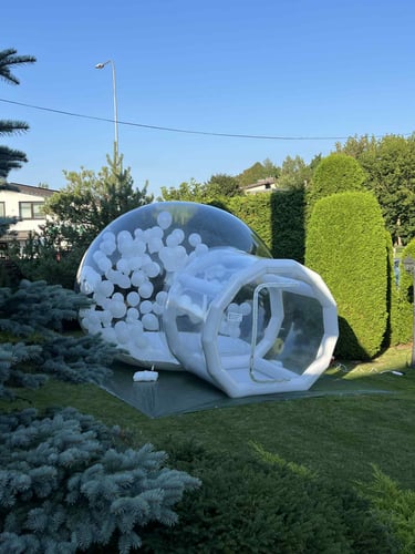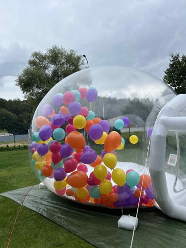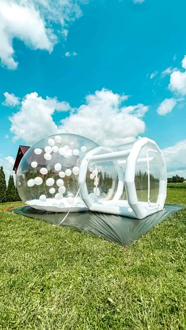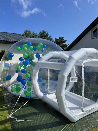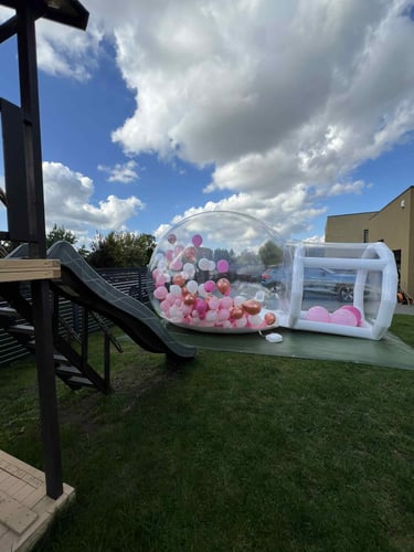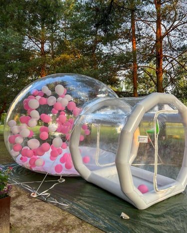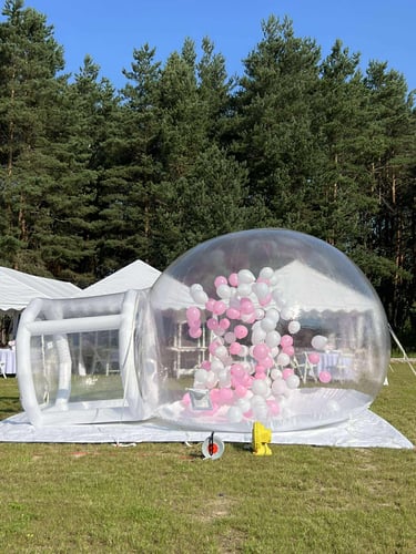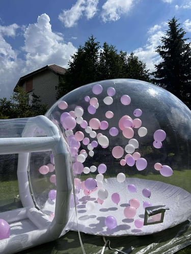 Pripučiamas burbulų namas ir burbulų batutas vaikų šventėms Kaune.